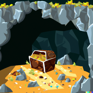 Al cabo de unos días, YAEL llegó a la Isla del Tesoro. Allí encontró una cueva oculta llena de tesoros: oro, diamantes y piedras preciosas. Pero también descubrió un gran secreto: la Isla del Tesoro estaba protegida por un dragón feroz.
